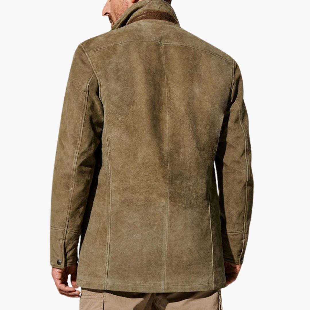 Giacca da uomo realizzata in camoscio con dettagli in pelle autentica. Progettata per offrire comfort e stile nelle stagioni di transizione, combinando funzionalità e design discreto.